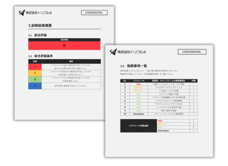トリプルAでは脆弱性の洗い出しと同様に、「適切な報告書の